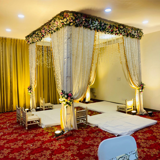 Experience sophisticated wedding décor designed with creativity and perfection. Our bespoke setups, floral arrangements, and statement backdrops ensure a truly grand and unforgettable celebration.Transforming wedding moments into timeless memories with elegant and customized décor.